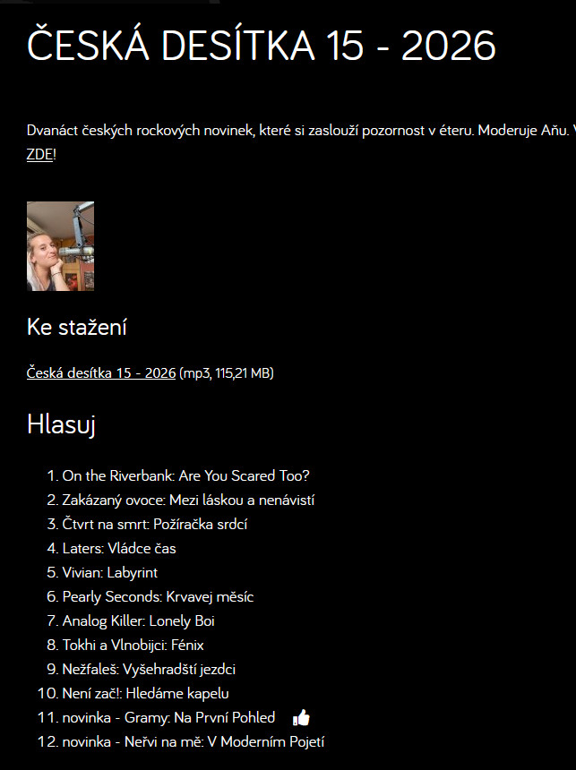 Kapely a songy z 16. kola hitparády 2026 Česká desítka si můžete poslechnout i v tomto Spotify playlistu.